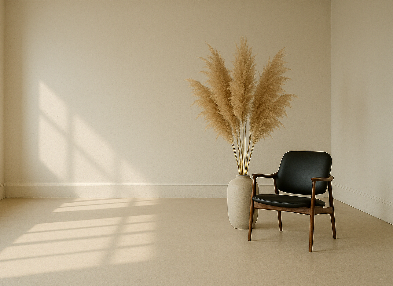 Auf 120 m² erwartet dich eine inspirierende Umgebung mit natürlichem Lichteinfall, hochwertiger Ausstattung, minimalistischer Einrichtung, warmen Holzelementen und variablen Hintergrundwänden.
