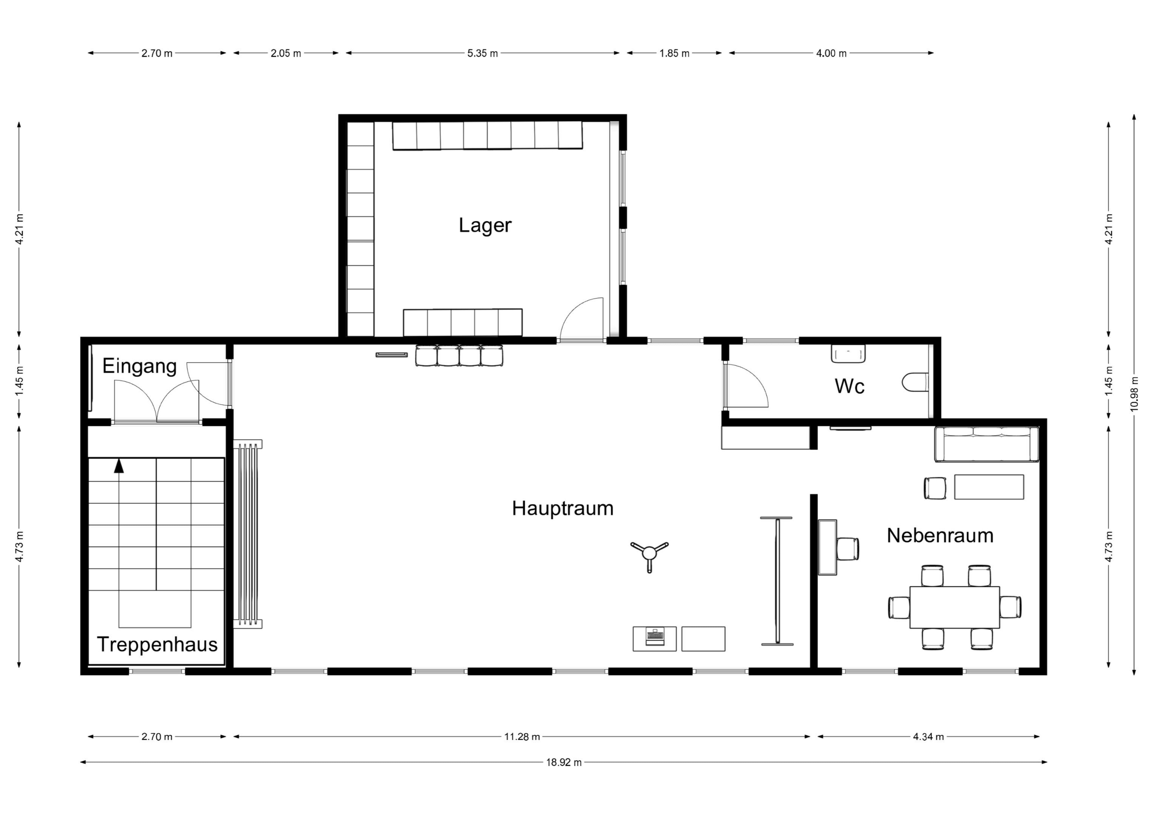 11 m Raumtiefe – optimal für Aufbau & Bildgestaltung